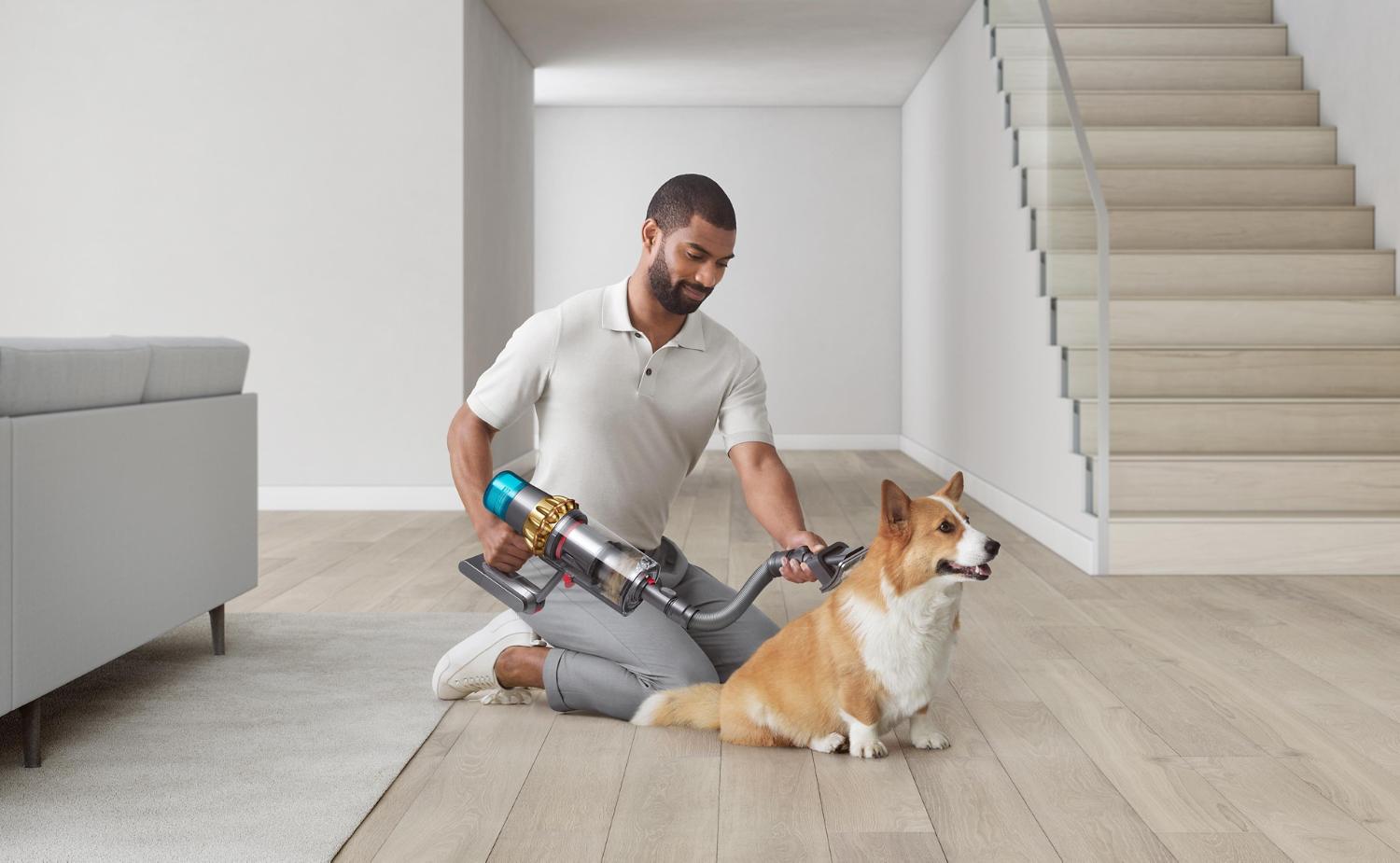 Consider specialized vacuum cleaner attachments designed specifically for handling pet hair. All Dyson vacuums come with de-tangling technology as standard, meaning hair removal vanes automatically de-tangle hair from the brush bar. But certain attachments go a step further in effectively tackling stubborn hair. For example, the Hair screw tool removes dust and hair from pet beds, mattresses and stairs, while the Pet grooming tool can be used directly on your furry friend to capture loose hair, pet dander and microscopic skin flakes. These attachments are particularly useful if you have multiple pets or medium to long-haired breeds.
