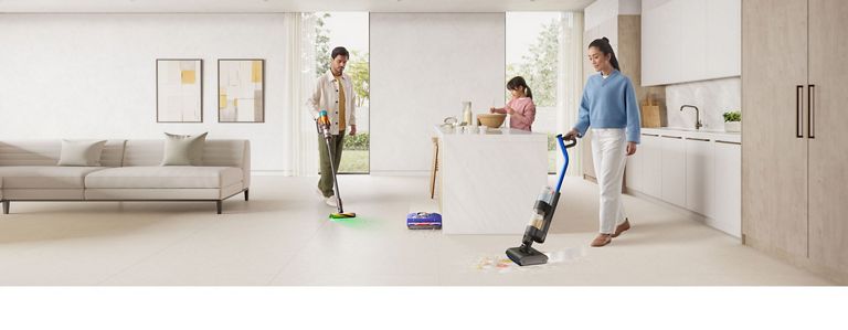 Start with a deep clean of high-traffic areas like the hallway, living room and kitchen. Use a cordless vacuum with attachments like the Hair screw tool and Soft dusting brush to tackle upholstery, pet beds and delicate surfaces.